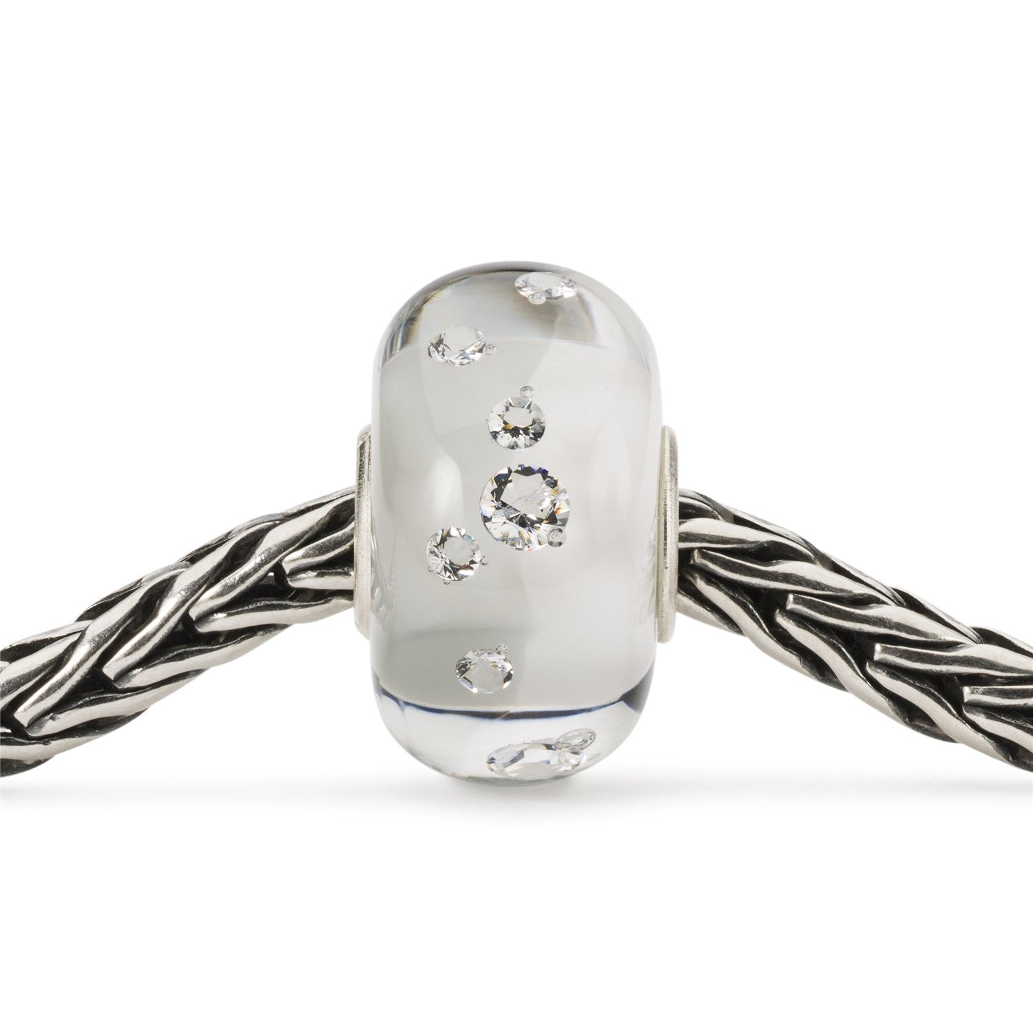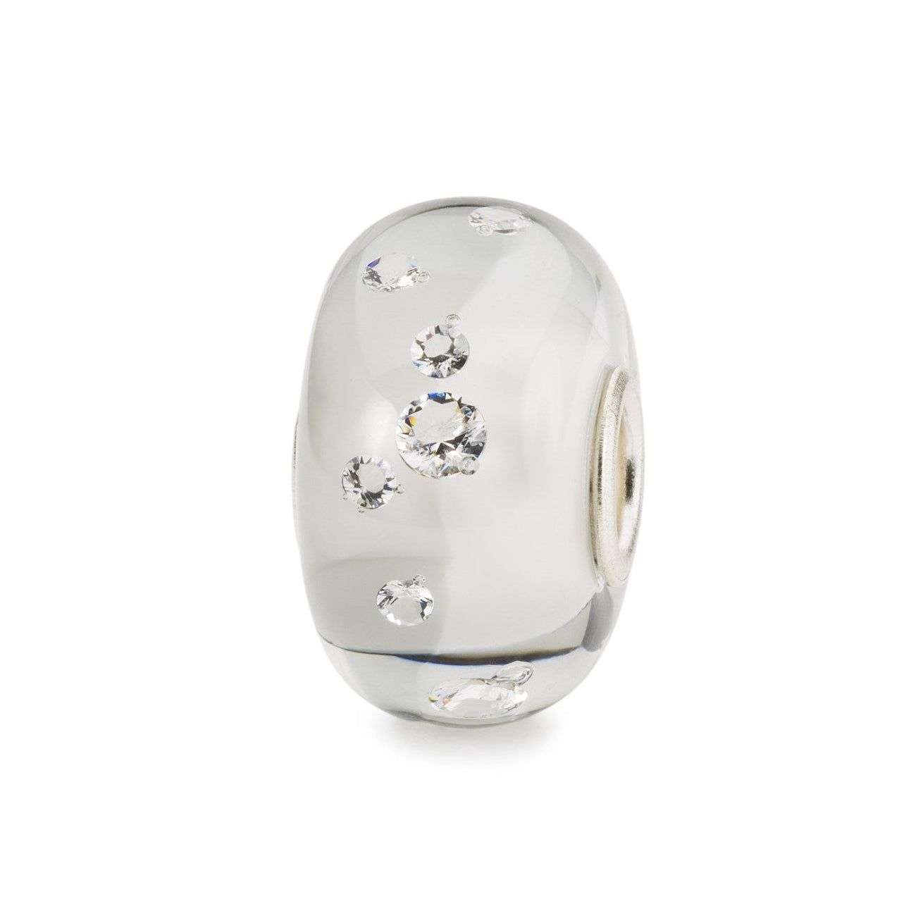 Cet orbe de cristal est recouvert de 13 zircons cubiques. La perle est doublée d’une nuance délicate de gris argenté.