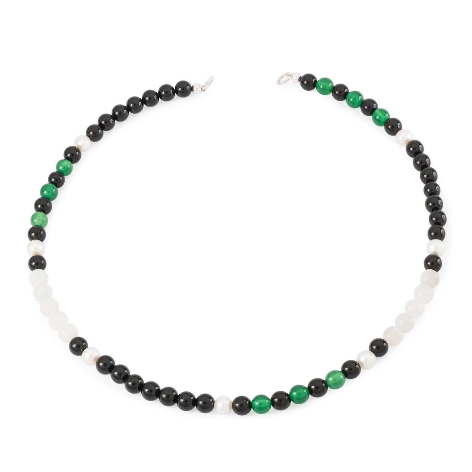 Grüne Träume Set bestehend aus Blätter der Gelassenheit Ohrstecker mit grünem Onyx, Traumhafte Gelassenheit Collier und Basisverschluss.