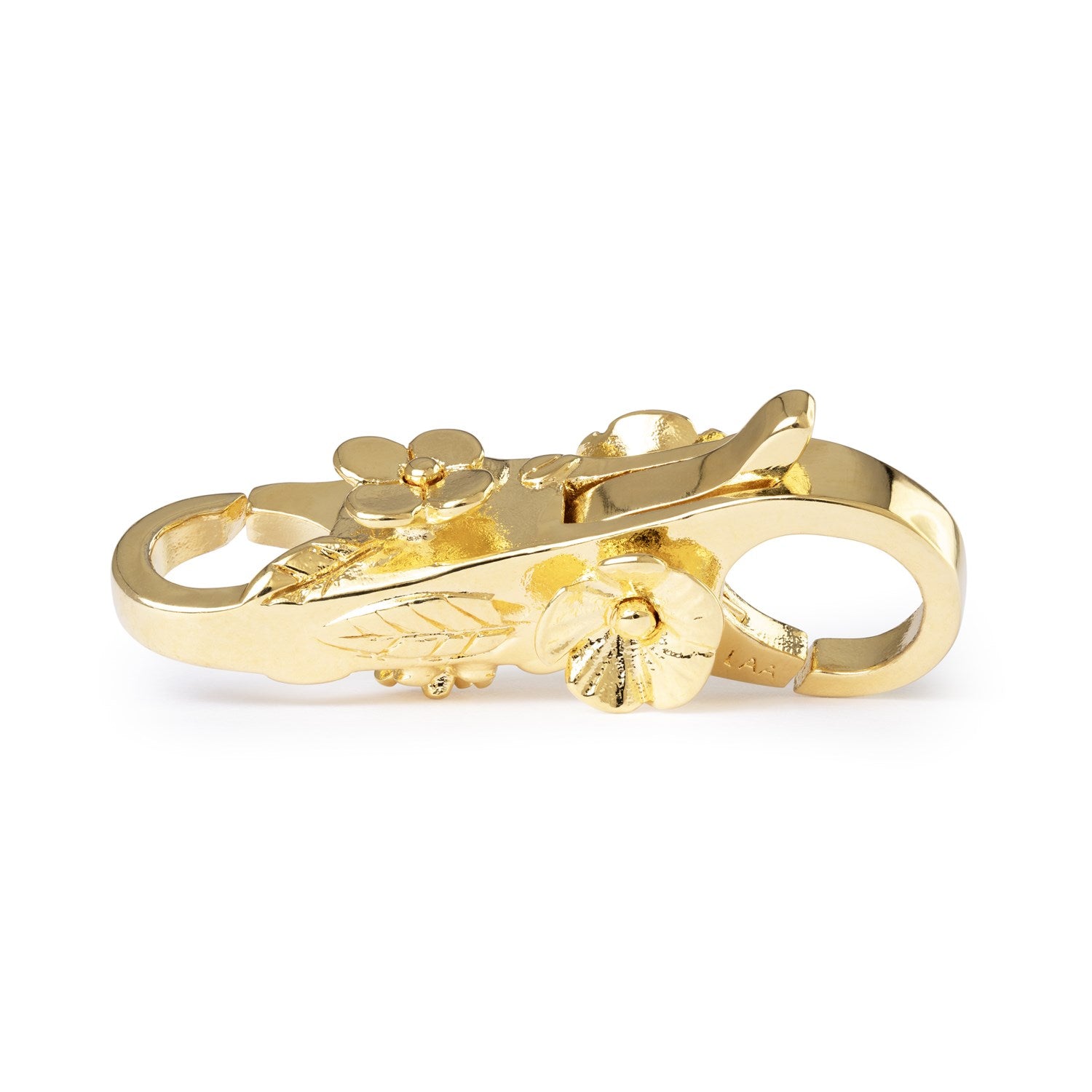 Le fermoir détaillé est orné de fleurs et de feuilles épanouies. Ce motif symbolise la connexion et la croissance, réunissant chaque histoire en un seul flux.