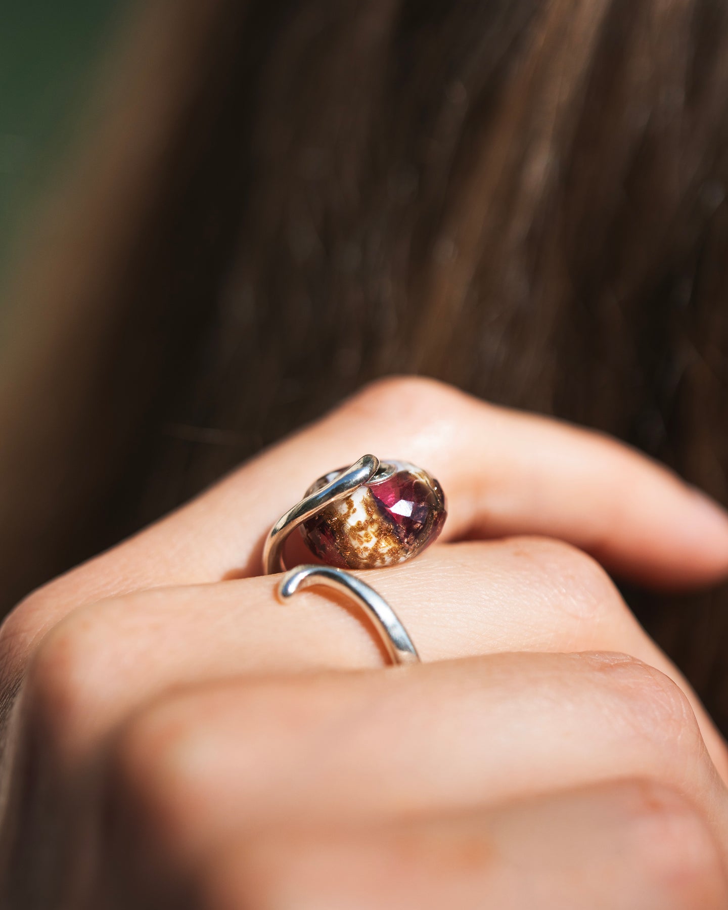 Le verre facetté, aux nuances rouge intense et ivoire doux, est parsemé d'éclats dorés et de bulles délicates, scintillant comme les graines d'une grenade. Grenade est un modèle primé du concours Vos Uniques 2025. Cette perle en édition limitée, fabriquée à la main en verre artisanal, incarne l'essence même de l'histoire d'Uniques.