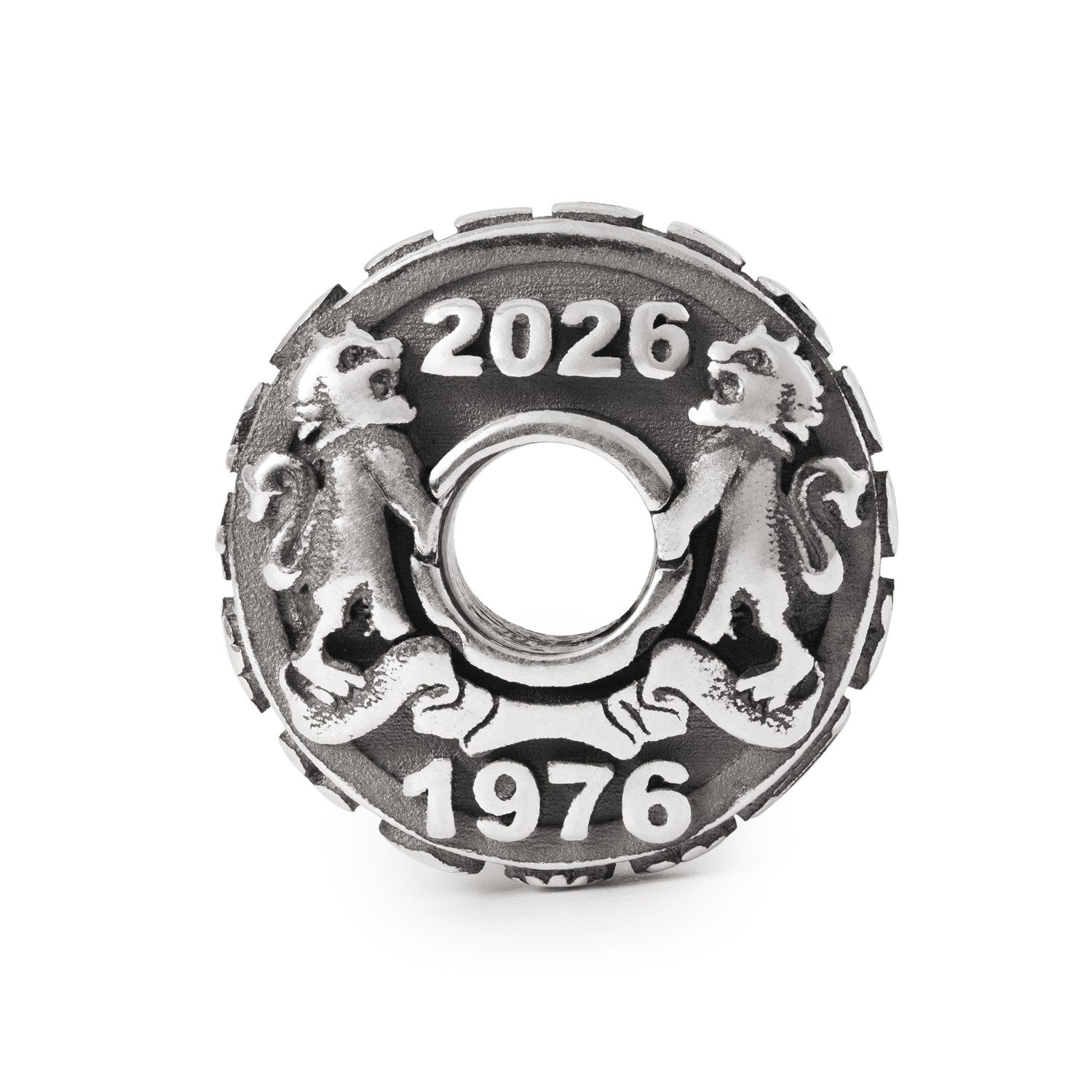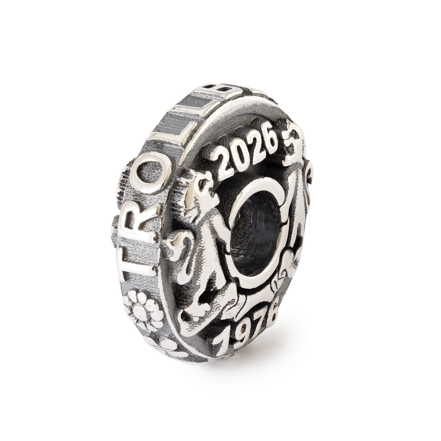 Diese besondere Coin-Bead ist luxuriös vergoldet und wurde anlässlich unseres goldenen Jubiläums gefertigt. Die Jahre 1976 und 2026 sind in die Bead graviert und stehen für fünf Jahrzehnte voller Kreativität, Gemeinschaft und Handwerkskunst. Am Rand der Bead ist der Schriftzug Trollbeads eingraviert.